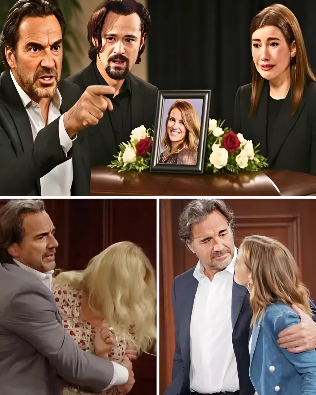 Ridge’s anguished protests filled the room with raw, guttural emotion, crying out for his chance to say farewell. His children stood unmoving, creating a painful divide between him and his partner’s final moments. The struggle was both heartbreaking and tense—love clashing with protection.