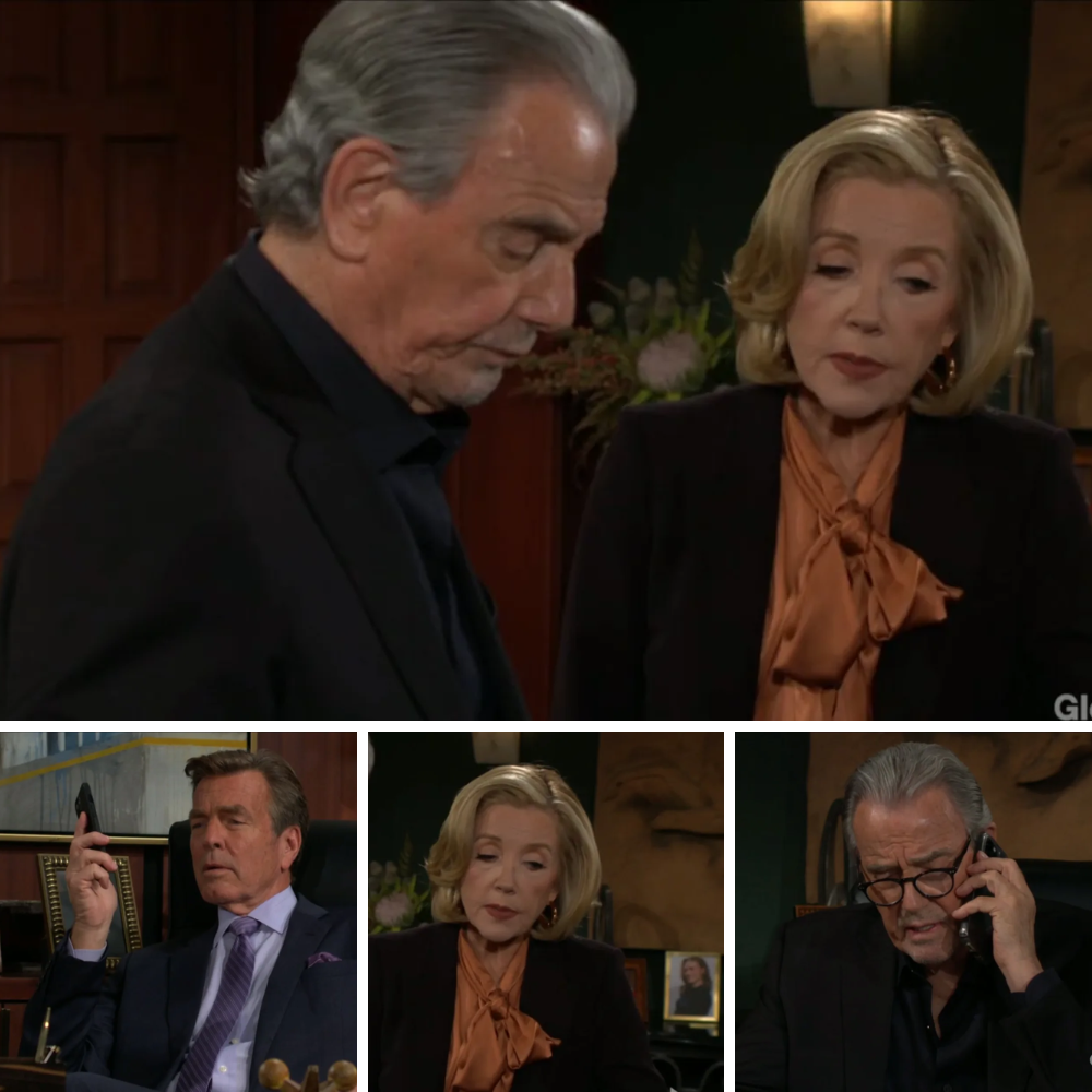 Later, Nikki arrives at Victor’s office. She kisses him hello. Victor tells her she just missed Jack Abbott, and that