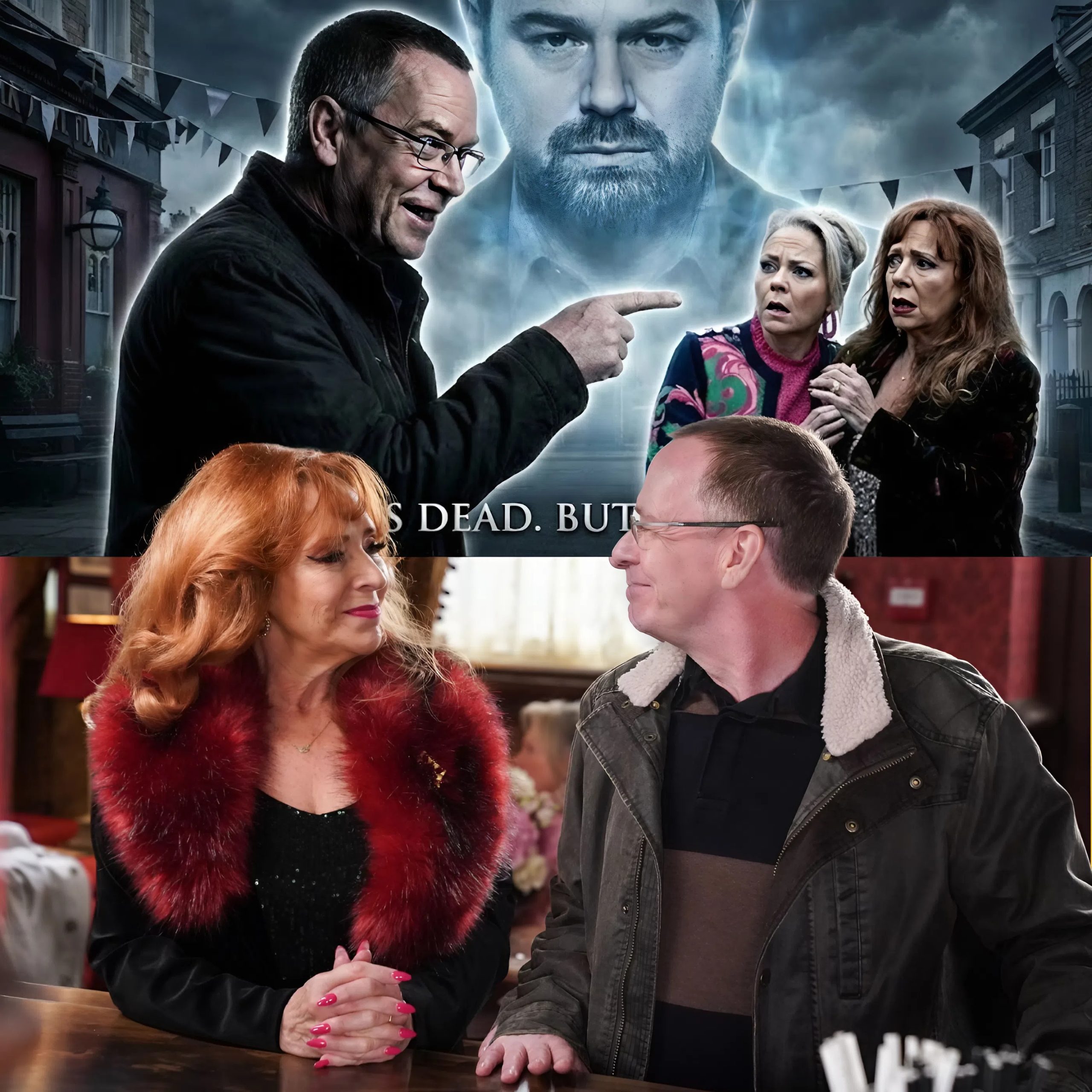 The pub’s atmosphere collapses. Grief floods back in, raw and unresolved, reminding everyone just how large Mick’s absence still looms over Walford.