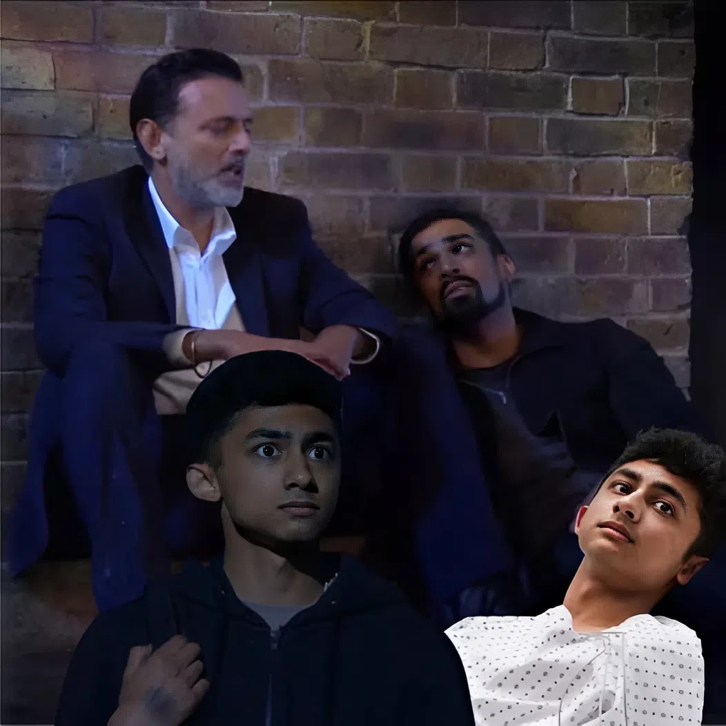 In his hallucination, Nish tried to strangle Ravi, so he hit back and brutally attacked his dad. But of course, Nish wasn’t really there, and Ravi had instead unwittingly attacked his son Nugget (Juhaim Rasul Choudhury).