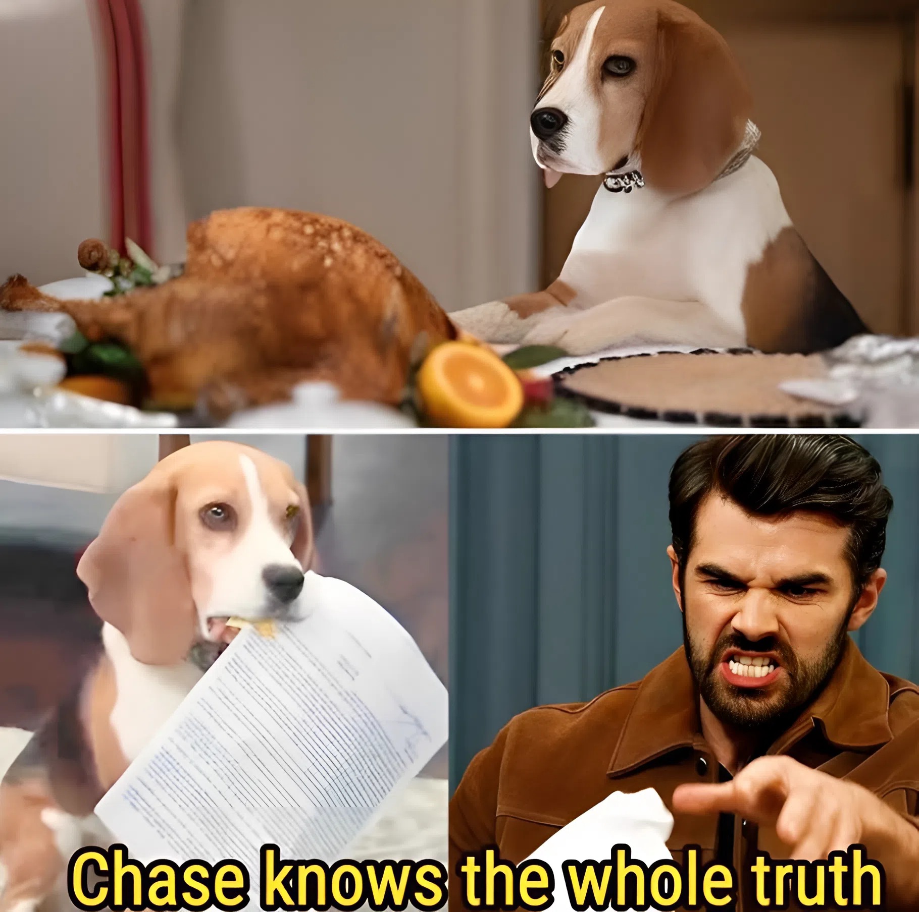 However, as fate would have it, the family’s hopes were dashed when Outback, the mischievous family dog, seized the opportunity to make history of her own. In a scene that could only be described as hilariously tragic, Outback launched herself onto the dining table, dragging the golden-brown turkey to the floor in a moment of canine glory. The sight of the triumphant dog, tail wagging and face smeared with gravy, left the family in a mix of shock and laughter, embodying the chaotic spirit of the Quartermain legacy.