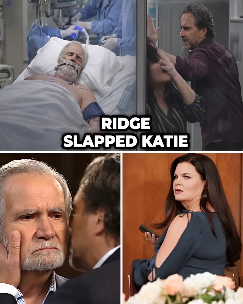 Ridge Forrester shocked the fashion world tonight by slapping Katie Logan during the chaotic aftermath of Eric Forester’s collapse at the Logan Fashion show. Blaming Katie for pushing Eric past his limits, Ridge’s fury 𝓮𝔁𝓹𝓸𝓼𝓮𝓭 deep fractures within the family as emergency crews rushed the patriarch to the hospital.