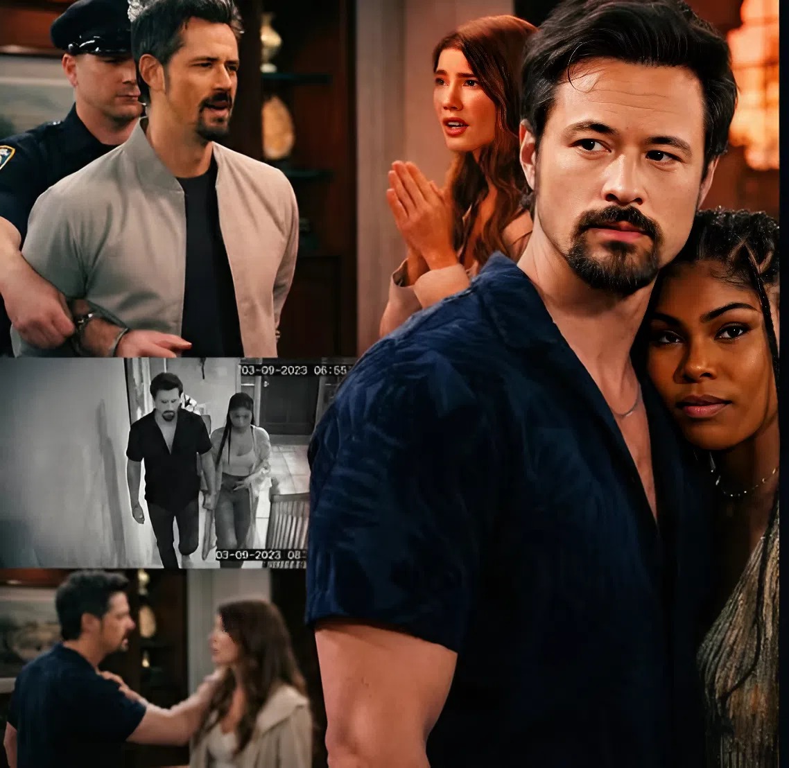 As Thomas is led away, handcuffed and humiliated, Steffy’s world collapses in front of everyone. Her fierce confidence crumbles, replaced by raw fear for her brother. The question pounding through her mind is the same one echoing through the room: