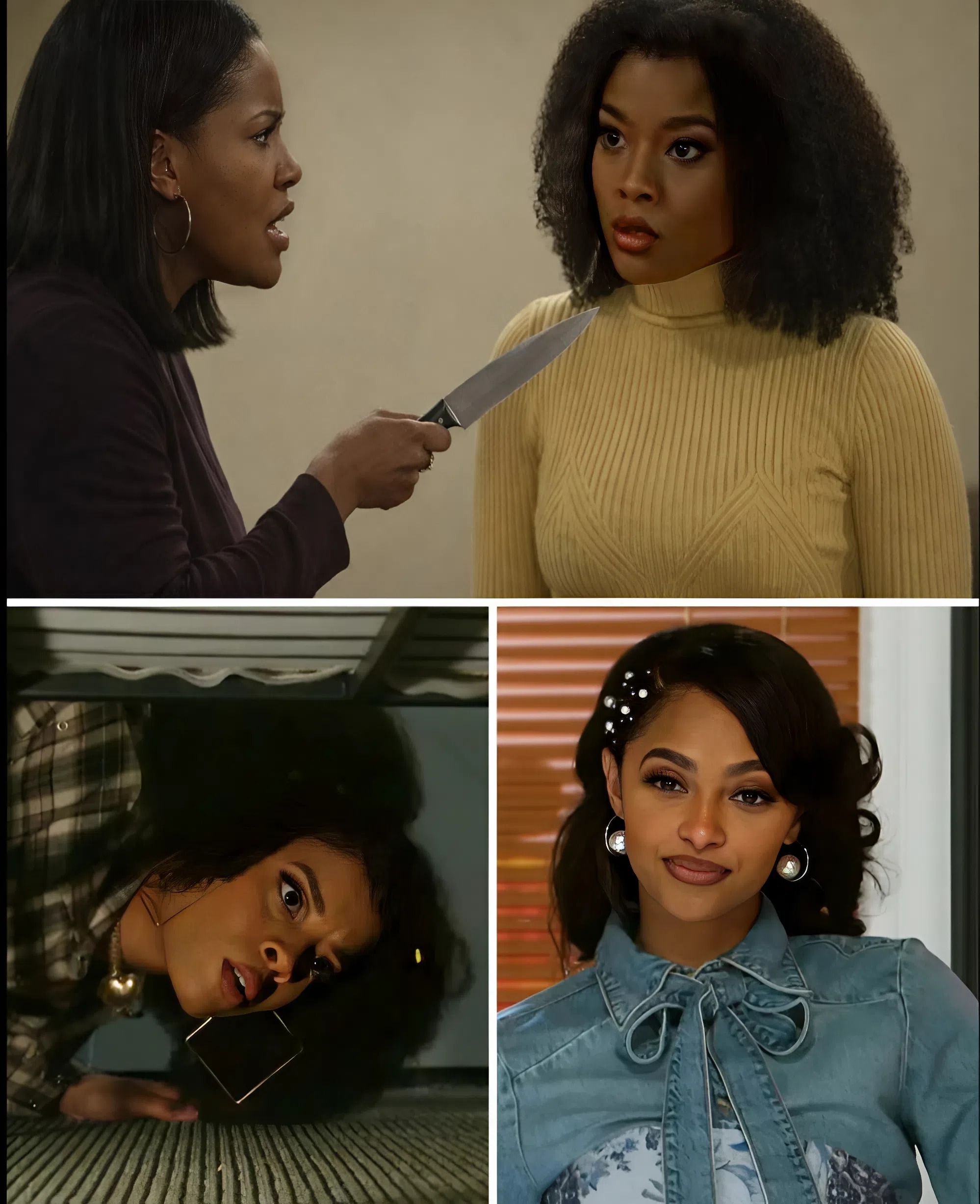 Eva froze, shock overtaking her as Yolanda revealed a gleaming knife. The blade’s cruel shine mirrored the intensity of Yolanda’s rage and dangerous instability. This was no simple jealous rage—it was a deadly warning that Eva’s safety was now at risk.